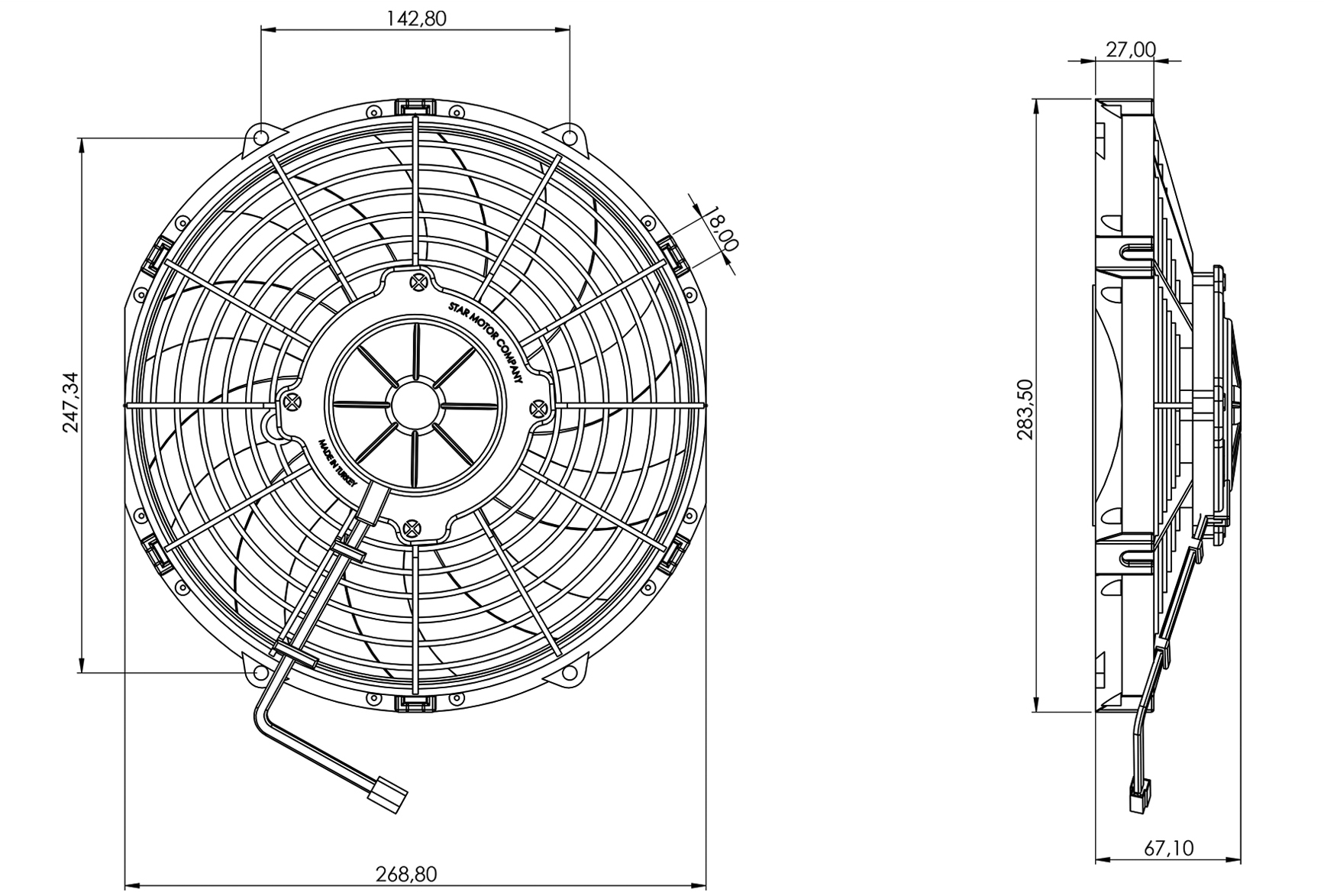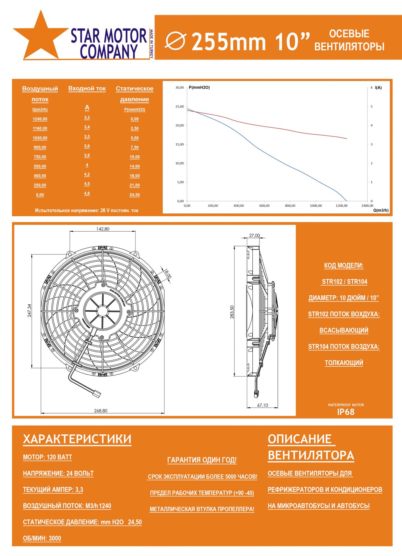 STR102 ОСЕВОЙ ВЕНТИЛЯТОР 10" ДЮЙМОВ 120 ВАТТ 24 ВОЛЬТ PULL / ВСАСЫВАЮЩИЙ ВЕНТИЛЯТОР ДЛЯ ИСПАРИТЕЛЯ РЕФРИЖЕРАТОРА, КОНДИЦИОНЕРОВ И РАДИАТОРОВ