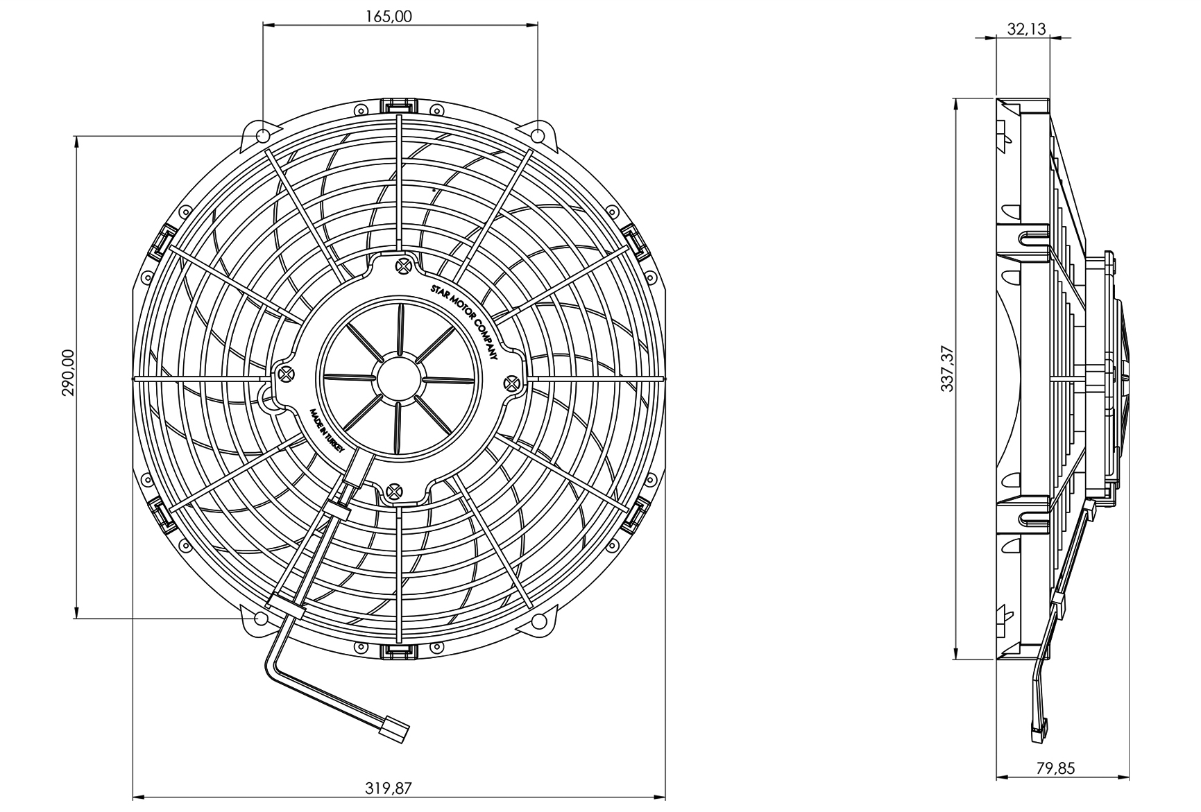 STR111 ОСЕВОЙ ВЕНТИЛЯТОР 12" ДЮЙМОВ 120 ВАТТ 12 ВОЛЬТ PUSH / ТОЛКАЮЩИЙ ВЕНТИЛЯТОР ДЛЯ ИСПАРИТЕЛЯ РЕФРИЖЕРАТОРА, КОНДИЦИОНЕРОВ И РАДИАТОРОВ